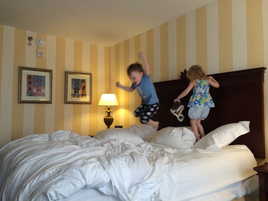 Kate was in talks at her conference so with Mommy away we of course started the day with some pretty epic jumping on the bed festivities. I was honestly impressed with the amount of air these kids got.