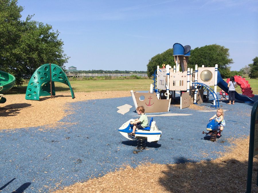 The main attraction for kids is a large, relatively new playground. The playground has two main play structures – one for smaller kids and one for slightly older ones, though our 3-yr olds navigated most parts of both just fine.