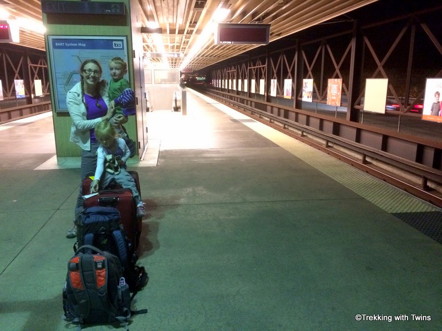 The train to the airport in San Francisco was fine minus a somewhat scary drugged out homeless guy cursing loudly most of the way. The kids didn’t seem to mind though, and certainly were too excited to sleep despite the hour plus ride.