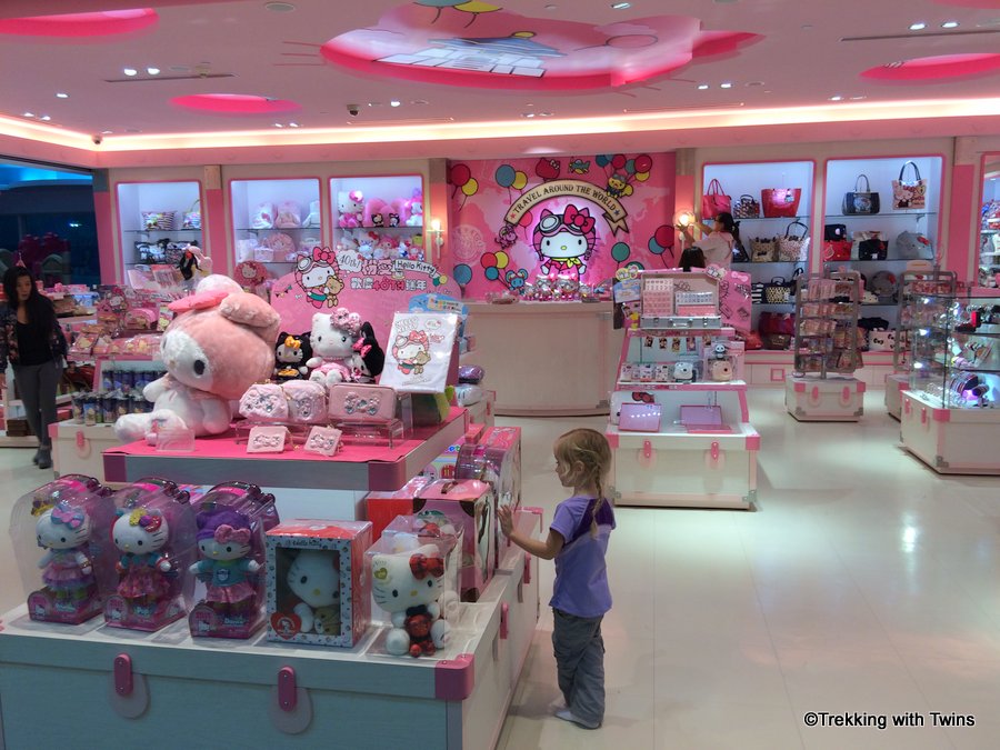 Our favorite shop was the Hello Kitty store. The store itself was of course full of adorable pink memorabilia which Aurora was fully familiar with from her hours of studying on the plane.