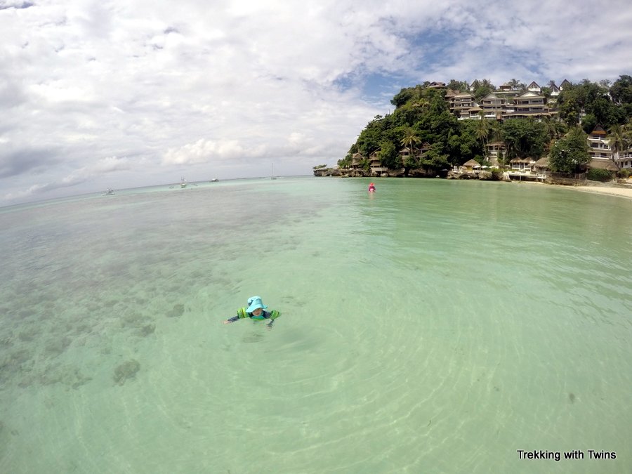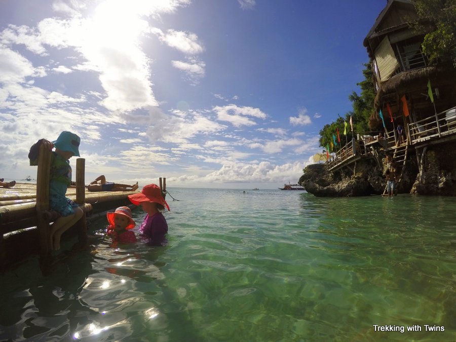The water at Diniwid is shallow for a long way out. Kat and I were actually able to stand all the way out to the ladder at Spider House. This was nice as the kids could swim next to us and we had a solid base when they clung on needing a rest.