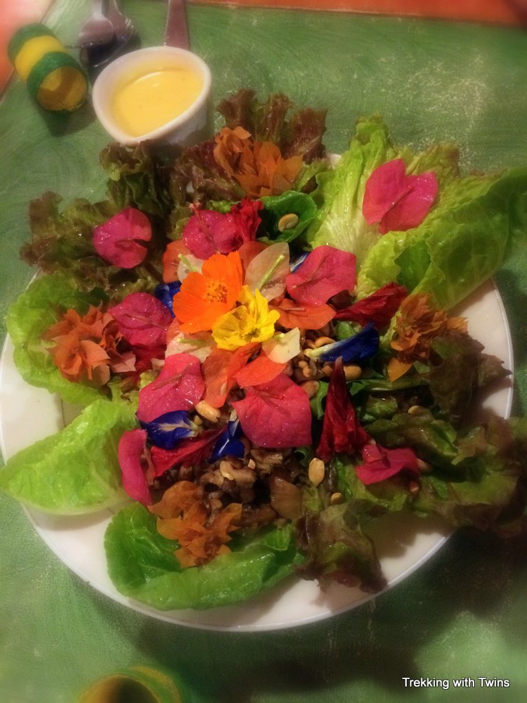 The rare salad sighting in the Philippines, this one featuring local flower blossoms at Bohol Bee Farm Restaurant on Alona Beach.