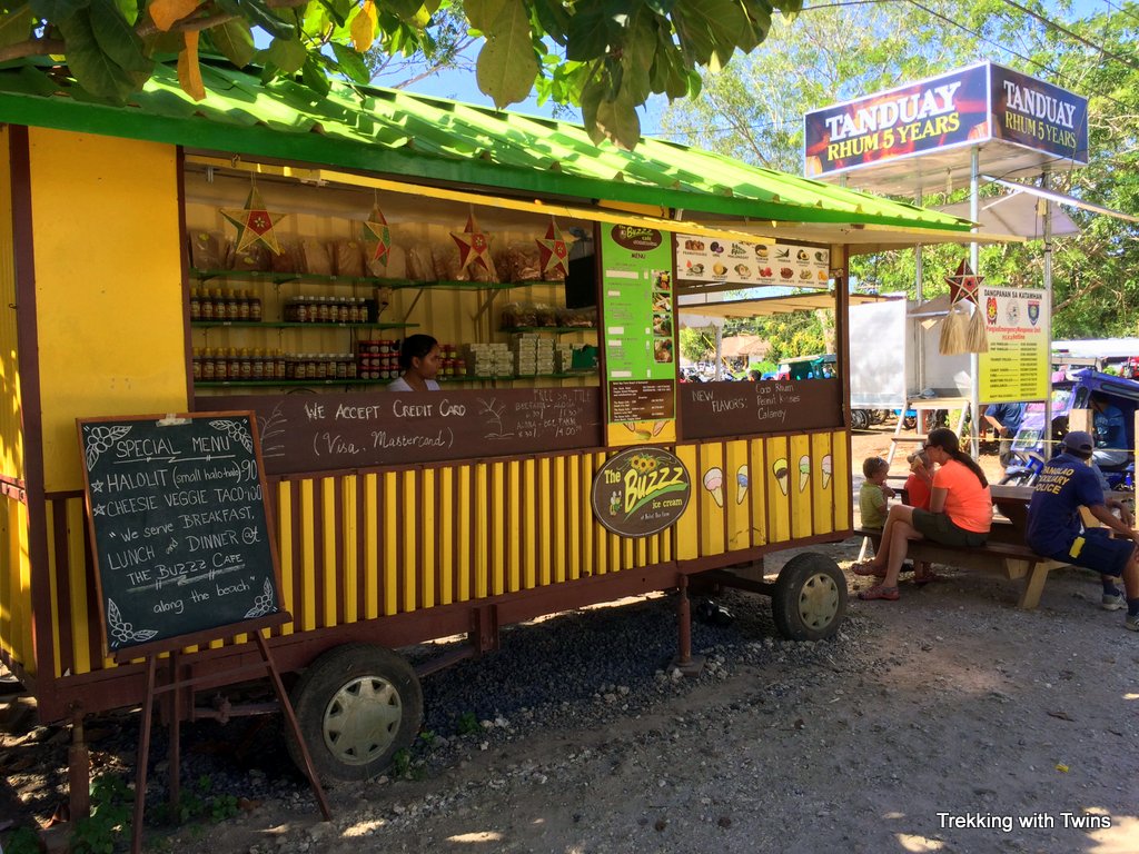 The ice cream from the Bee Farm truck is all homemade and all super delicious. We were there almost every day. Kat and Aurora got an ube cone each time – Kat because she was addicted to the taste after one lick, Aurora because it was purple. They also serve the same ice cream at the location on the beach (it’s 10 pesos more if you buy it in the restaurant itself instead of from the stand downstairs on the beach).