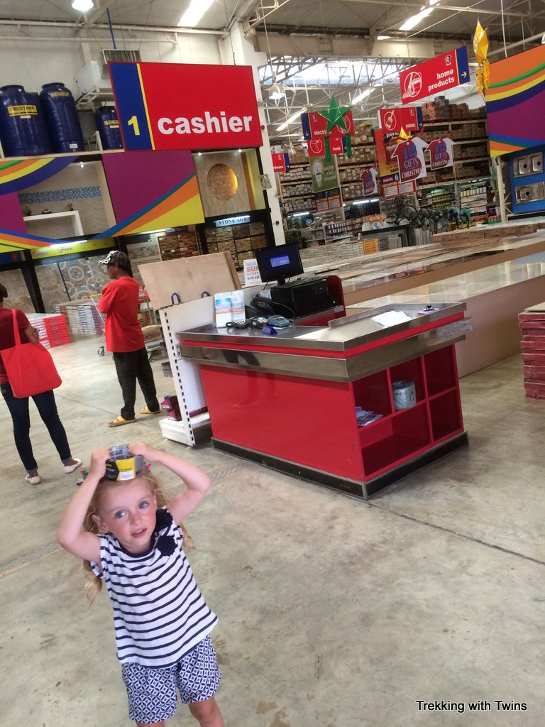 Aurora helping me shop for duct tape at Philippines Home Depot.