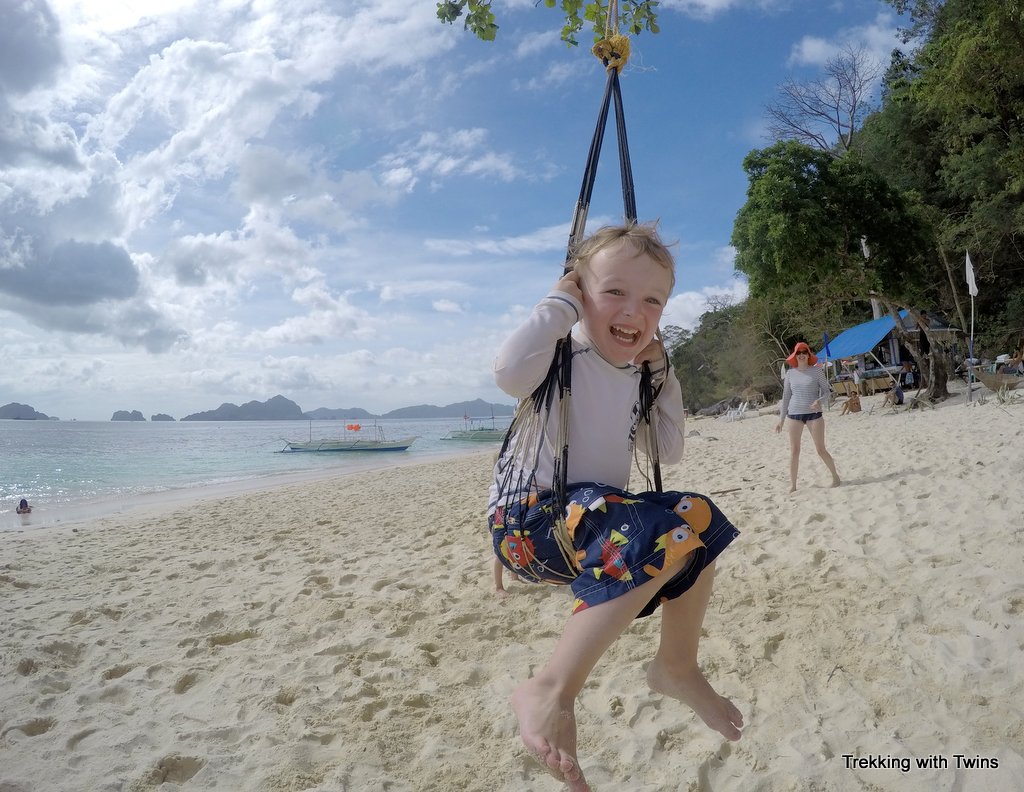There are a bunch of bamboo huts along the beach with benches inside where you can enjoy your halo halo or just relax. There’s also a few hammocks and a fun swing dangling from a tree overhanging the beach.