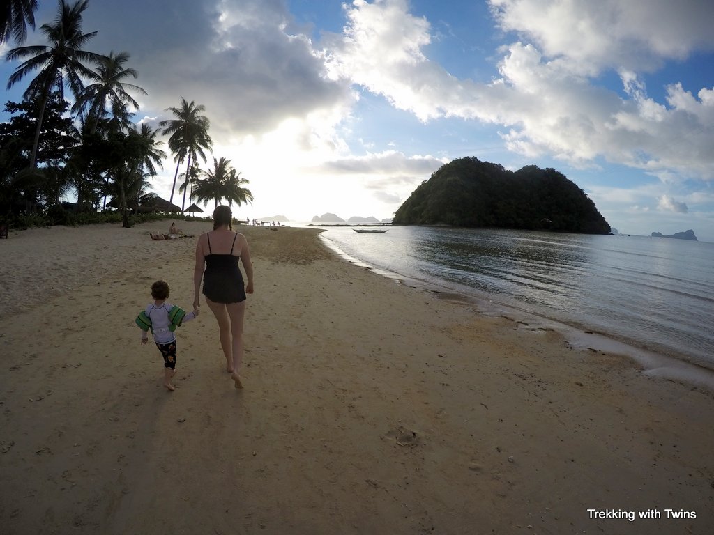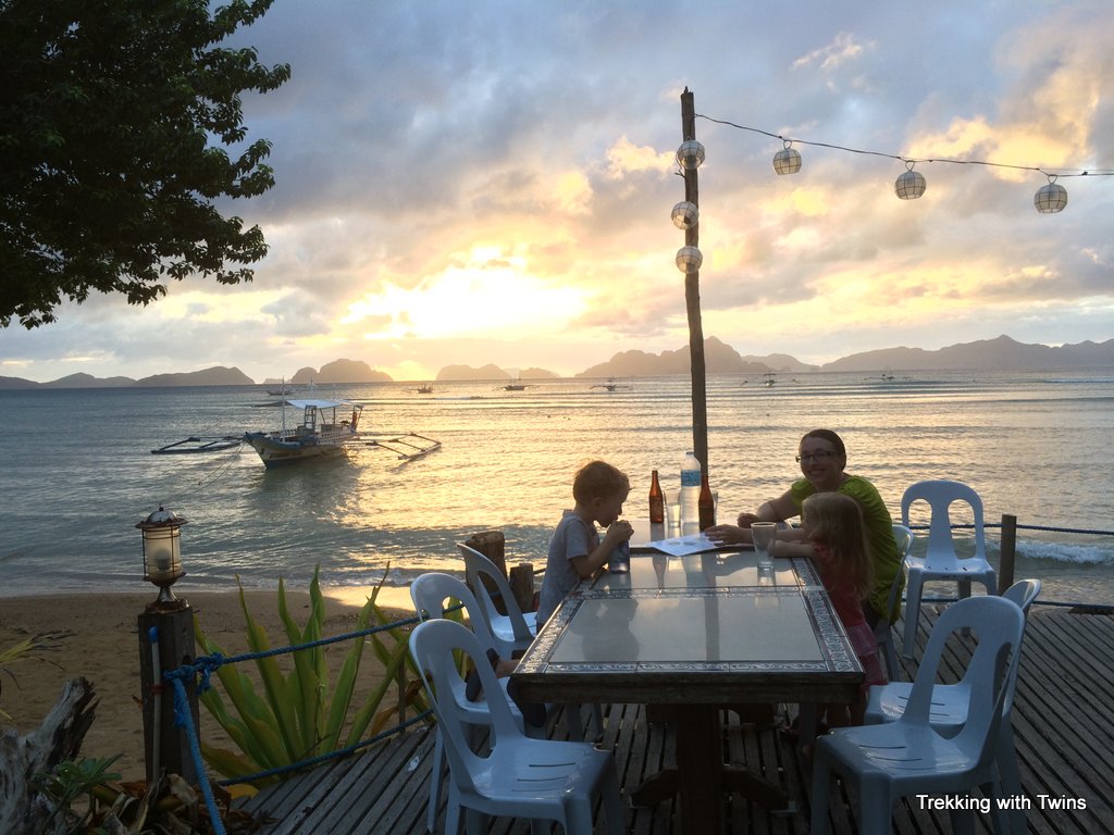 We wouldn’t recommend staying in El Nido town proper for a family vacation. Corong Corong Beach is a short trike ride from town (about 5 minutes and 50 pesos, $1) so going in for dinner or shopping is easy to do. The town is quite busy with a lot of traffic and noise. The streets have no sidewalks making walking around a bit treacherous with little ones.